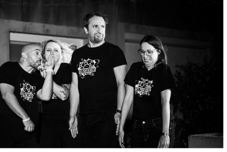 Impro totale !! Chaque improvisateur-rice deviendra tour à tour maître ou maîtresse de cérémonie et fera vivre à ses partenaires des défis scéniques aussi inattendus que réjouissants. Un cabaret original, plein d'audace et d'imprévu, pour célébrer le retour de la troupe au stockage. Une soirée pleine d'énergie et de rire.