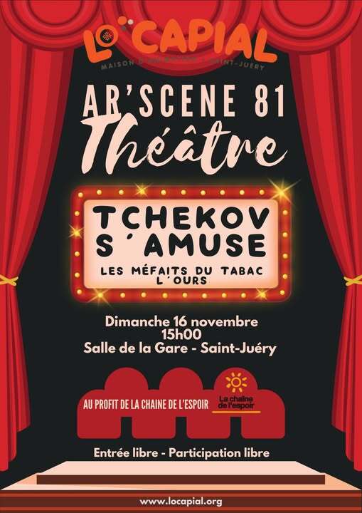 La troupe Ar'Scène 81 - Lo Capial vous invite à un moment de théâtre plein d'humour et d'émotion avec "Tchekhov s'amuse", le dimanche 16 novembre à 15h00, à la Salle de la Gare à Saint-Juéry.