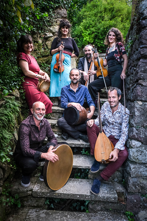 Les sept musicien.nes du Grand Ensemble Filos, passionné.es de musiques méditerranéennes, interprètent un répertoire empreint d'une grande curiosité musicale, inspiré de musiques populaires grecques, kurdes et turques.