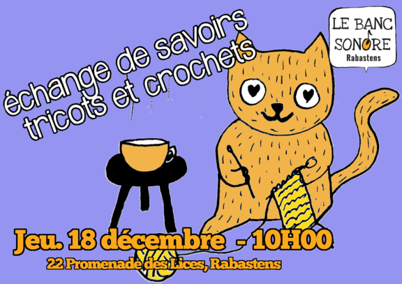 Tricoter / crocheter ensemble. Un rendez vous pour échanger sur nos projets, partager nos savoirs-faire et dérouler nos pelotes autour d'une boisson chaude. Tous niveaux, le but est aussi l'entraide :)