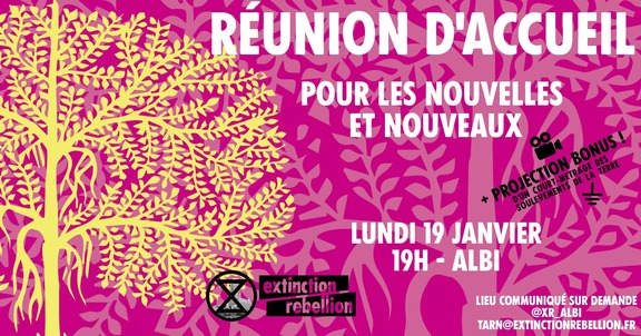 Extinction rebellion Albi te convie à sa réunion d'accueil ouvert à toutes les personnes intéressées par le mouvement !
