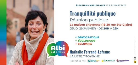 Elle y présentera également les mesures qu'elle propose dans le contrat qu'elle souhaite passer avec les Albigeois dans le cadre des Élections Municipales 2026. Ces mesures sont basées sur un travail mené depuis plus de 6 ans avec les acteurs du territoire.