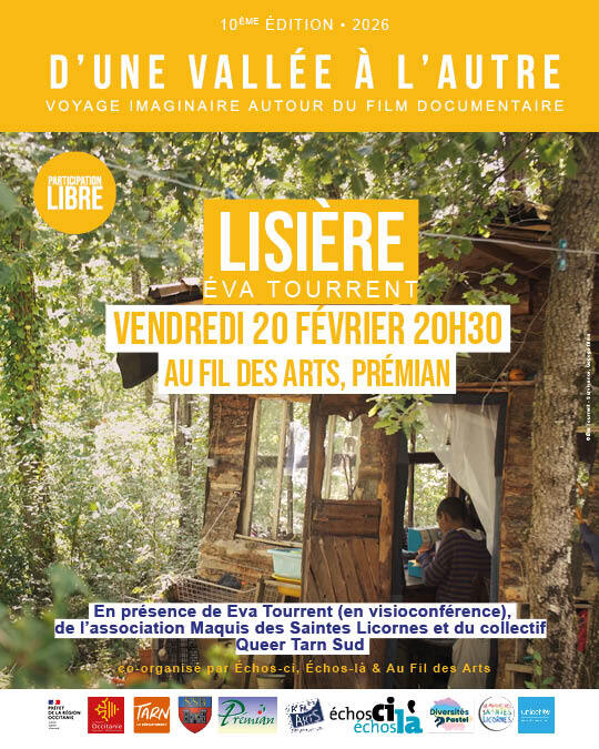 Le vendredi 20 février à 20h30 au Centre Culturel Au Fil des Arts (Prémian), nous vous donnons rendez-vous pour la projection du film documentaire "Lisière" de Eva Tourrent.