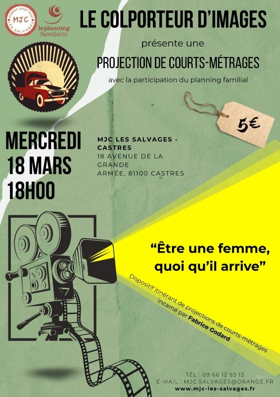 La MJC des Salvages avec le soutien du Planning Familial du Tarn vous invite à une projection de courts métrages, animée par le Colporteur d'Images.