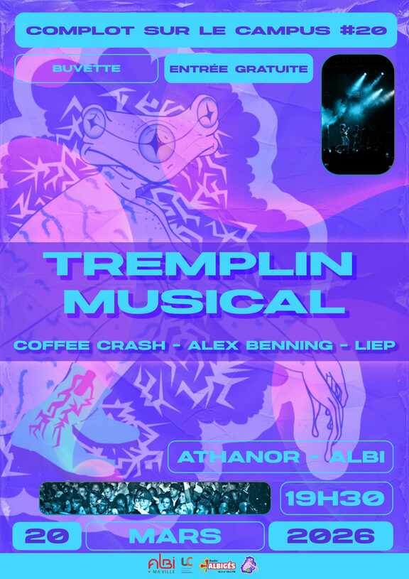 Les Comploteurs Festifs organisent leur tremplin musical afin de mettre en lumière la scène musicale locale ! Le gagnant se verra performer lors de l'ouverture de la 20ᵉ édition du festival Complot sur le Campus.