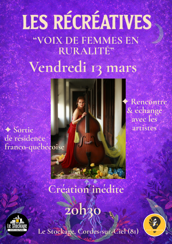 Soirée née d'une résidence croisée franco-québécoise réunissant 8 artistes autour des thèmes de la ruralité au féminin, des territoires et de la transmission, accompagnée de rencontres avec le public et ponctuée de courts extraits de projets personnels.
