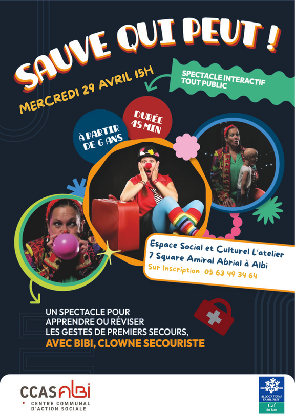 « Sauve qui peut » est un spectacle pensé pour les petits et grands. A travers le personnage de "Bibi le Clown", Émilie Caminade met en scène les gestes de premiers secours de manière ludique et amusante. Un spectacle divertissant et pédagogique, pour apprendre tout en s'amusant.
