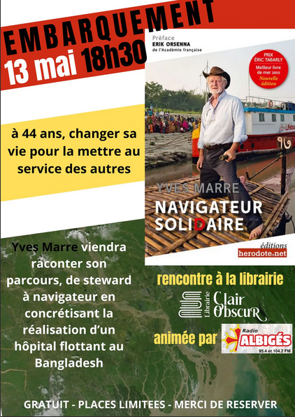 Radio Albigés vous propose une rencontre avec l'auteur Yves Marre entrepreneur, inventeur, et aventurier... autour de son livre NAVIGATEUR SOLIDAIRE édité par Isabelle Le Goff.